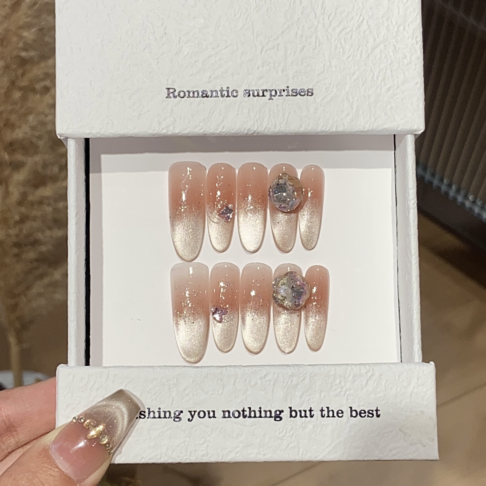 一只顾美甲 日常百搭冰透渐变猫眼堆堆方钻可可香颂可拆卸穿戴甲