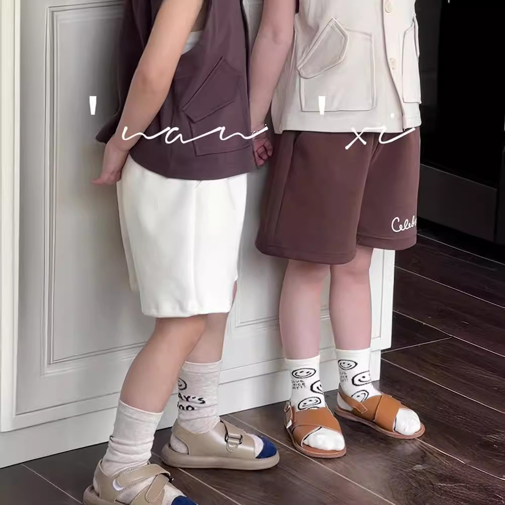 儿童短裤24年夏新款男女童针织中裤宝宝字母印花百搭休闲五分裤