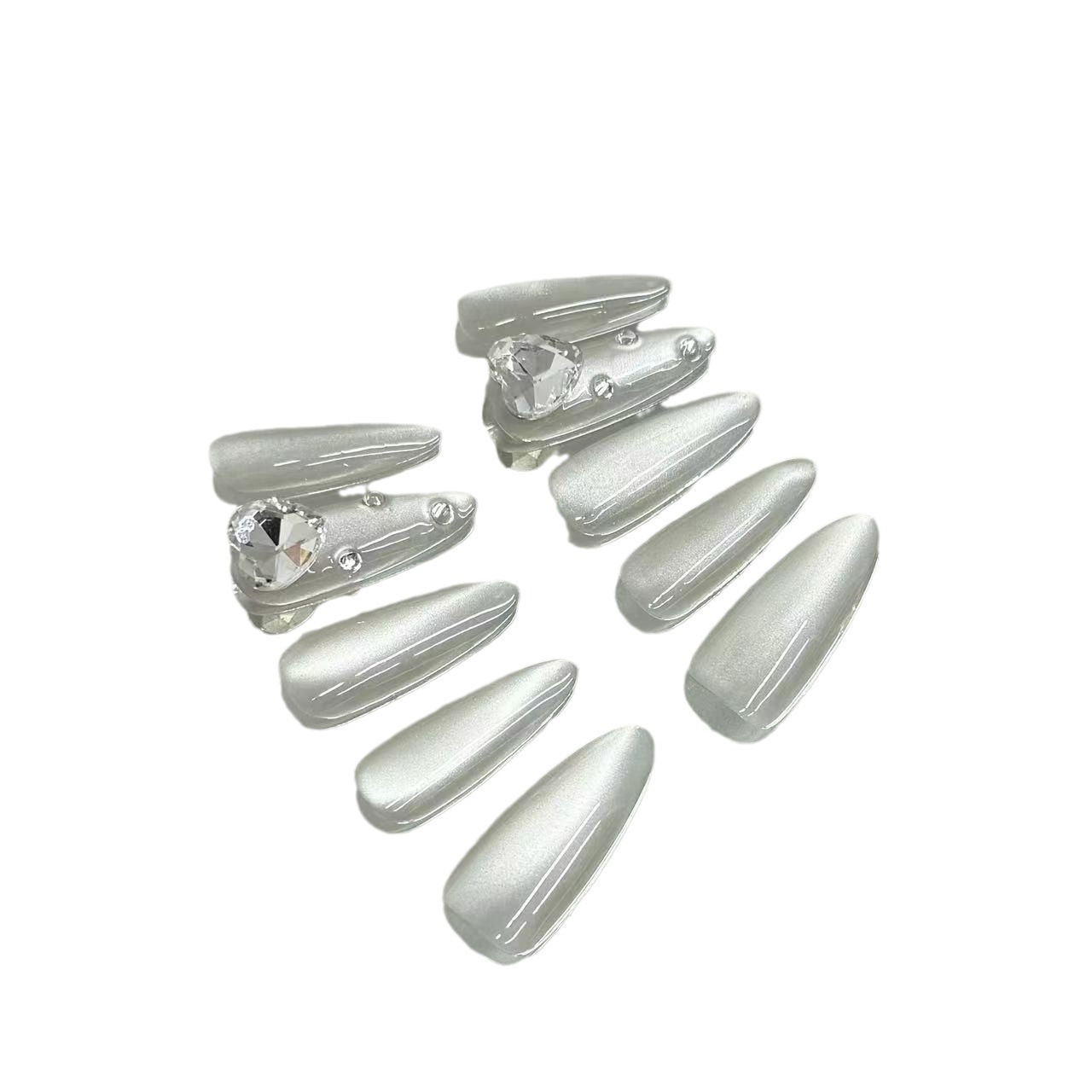 纯手工穿戴甲冰透闪钻爱心透亮气质高级感温柔贴钻细闪美甲贴片