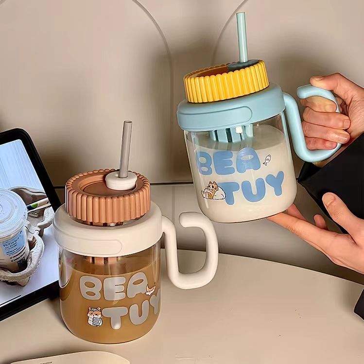 大容量茶水分离玻璃杯子带把手吸管杯男女士泡茶手柄办公室水杯