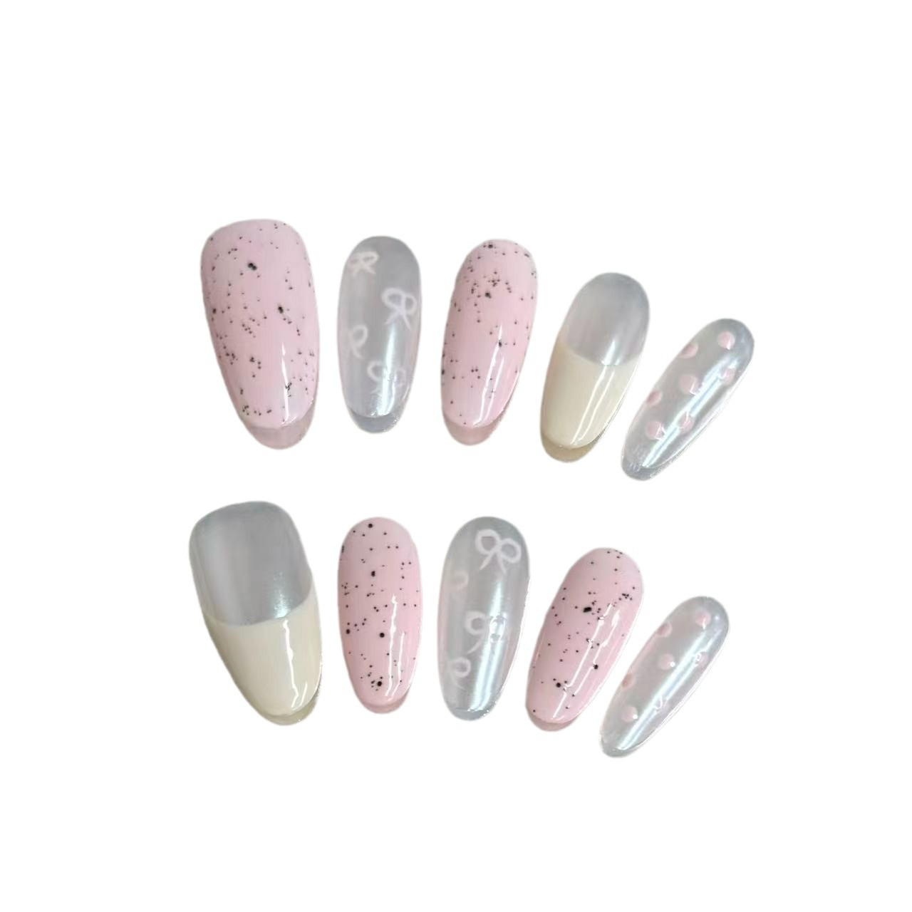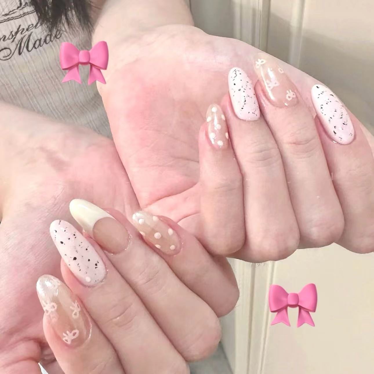 纯手工穿戴甲可爱蝴蝶结波点亮片温柔跳色手绘气质美甲贴片成品