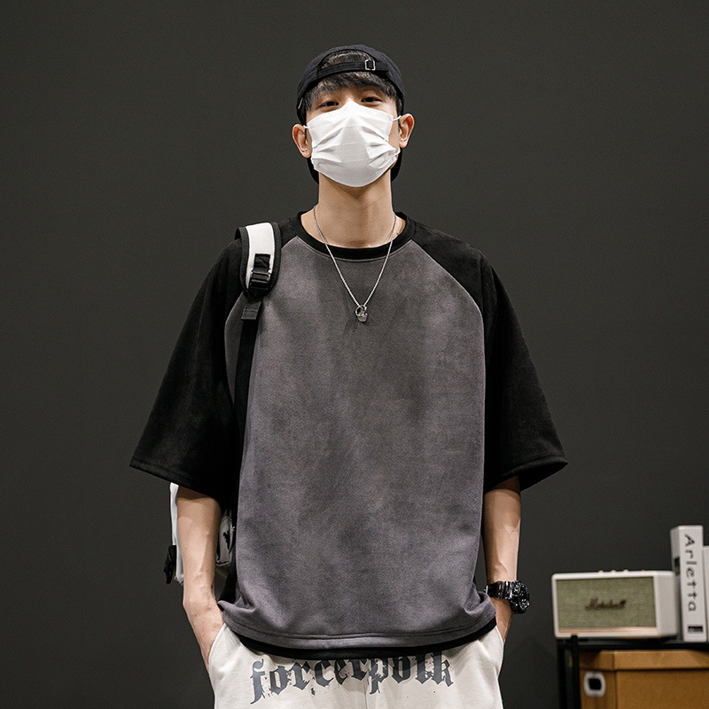 短袖t恤男夏季宽松拼色设计感小众休闲体恤衫