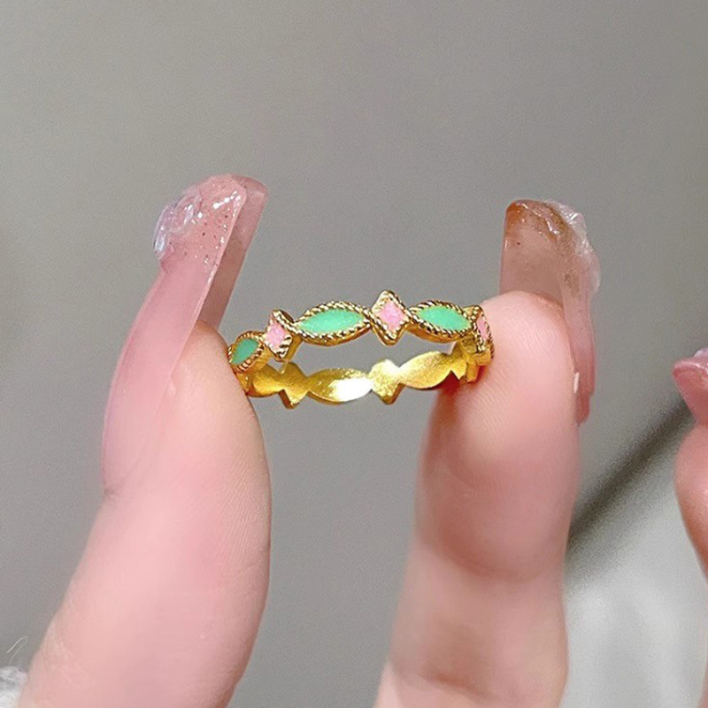 小红书爆款新中式高级感珐琅彩色小桃星戒指女粉色小众轻奢食指戒
