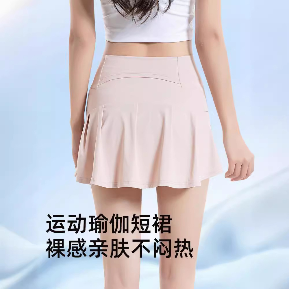 夏季冰丝运动防晒短裙瑜伽带内衬不走光高腰速干网球裙A字裙新款