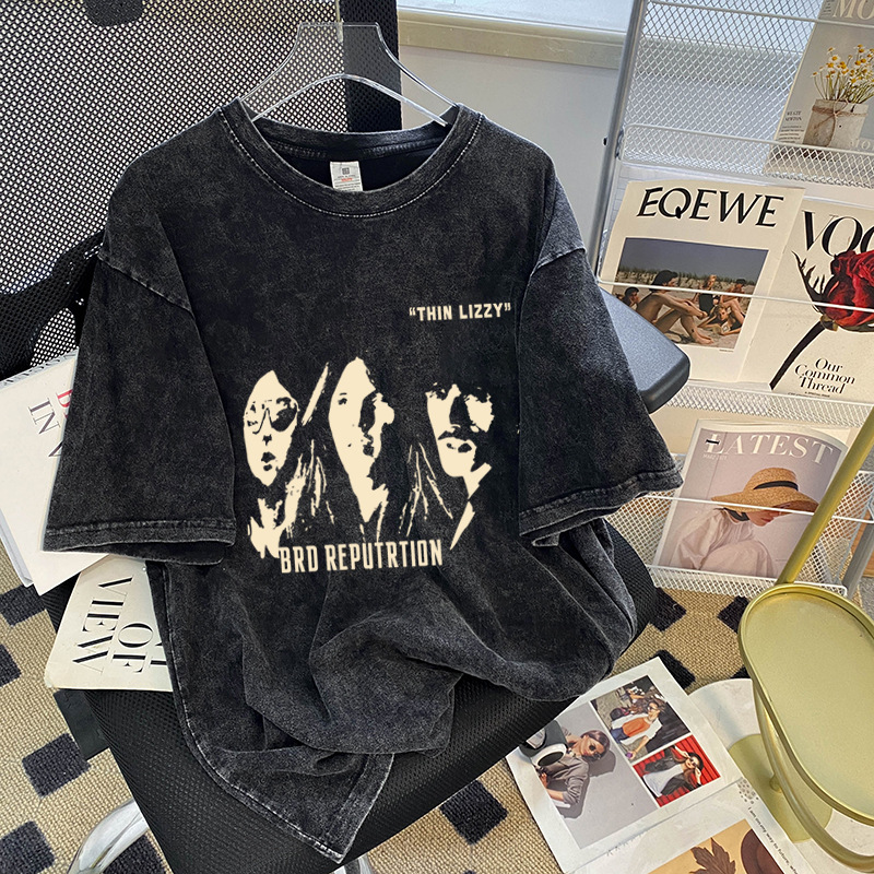 美式复古水洗做旧正肩短袖t恤女夏纯棉重磅潮牌宽松情侣半袖上衣