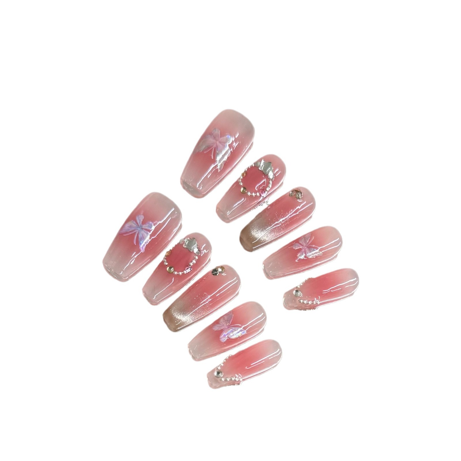 手工穿戴甲冰晶蝴蝶春日气质美甲显白猫眼腮红可拆卸穿戴甲成品甲