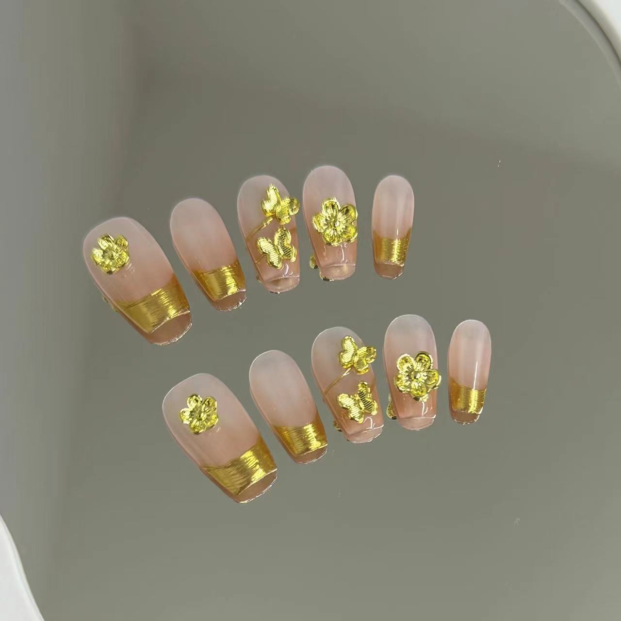 纯手工穿戴甲金色花朵轻奢法式高级感ins小众千金美甲可拆卸贴片