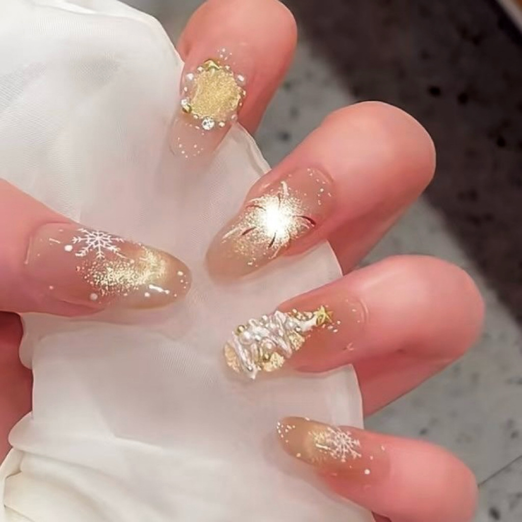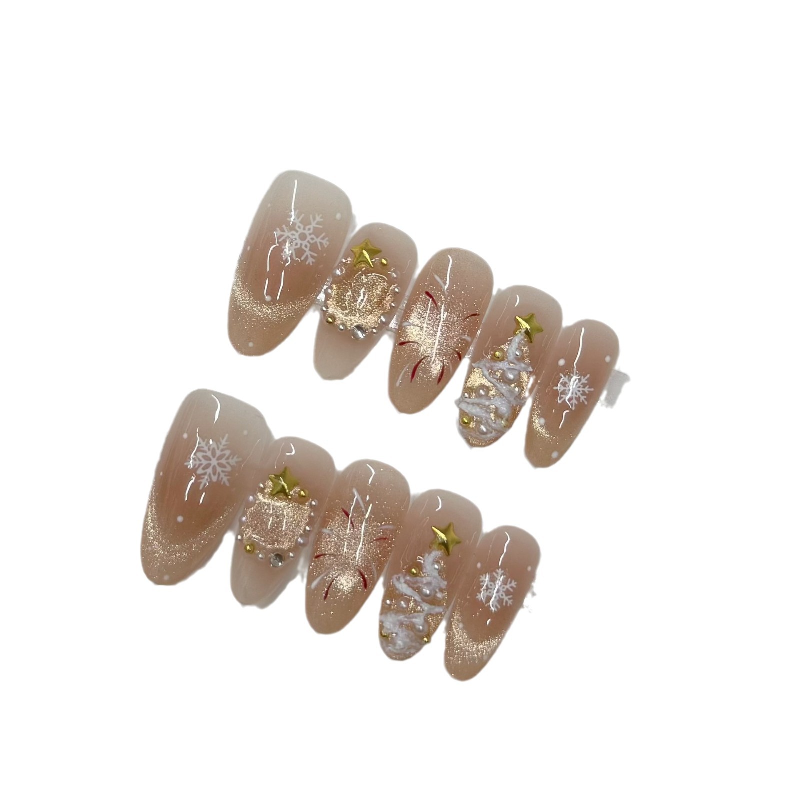 纯手工穿戴甲璀璨圣诞爆闪圣诞树烟花白色雪花轻奢温柔可拆卸美甲