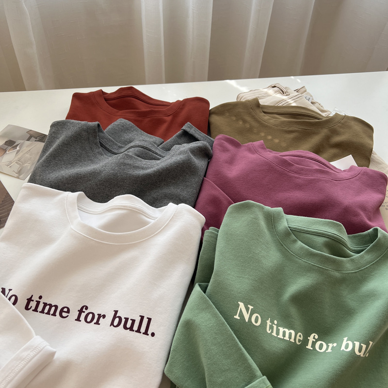 韩版时髦百搭字母印花圆领长袖T恤女宽松加厚内搭磨毛打底衫秋冬