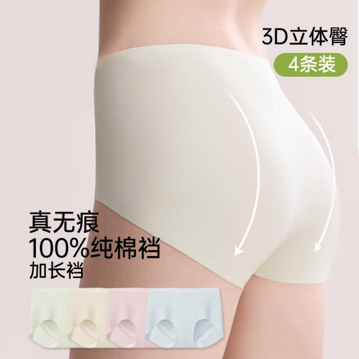4条冰丝女士内裤女纯棉抑菌加长裆舒适透气无痕内裤三角裤