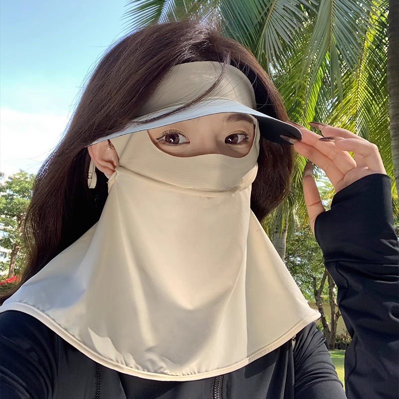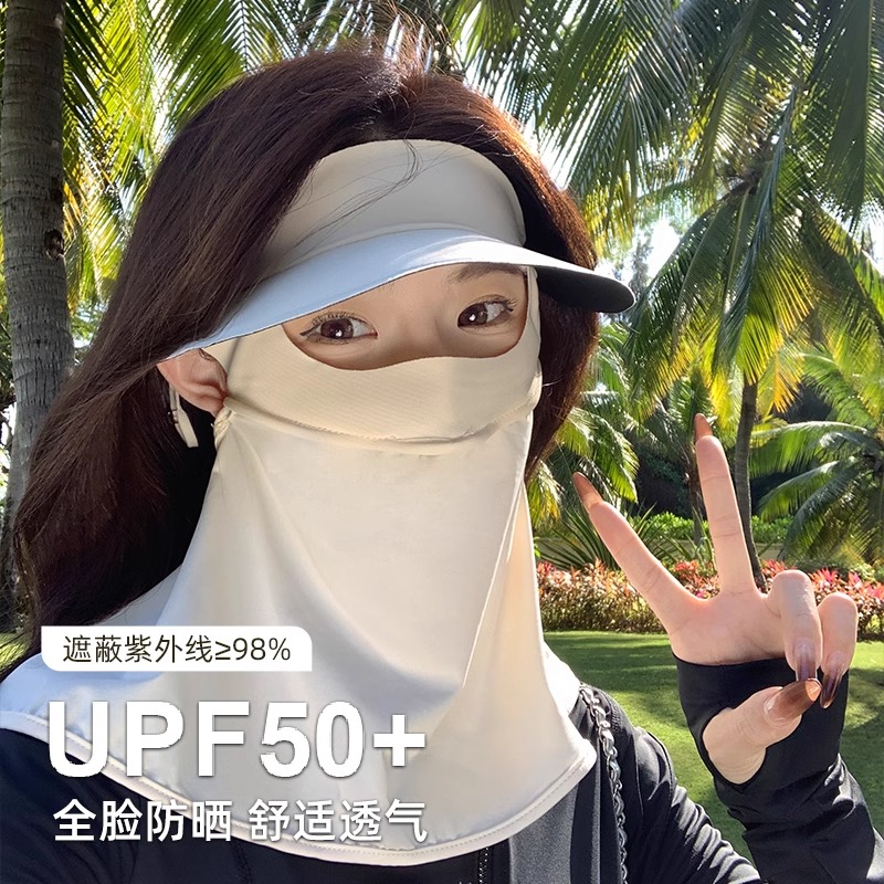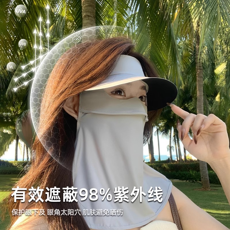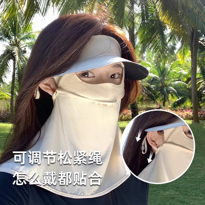 防晒面罩女夏季新款防紫外线护脸口罩冰丝遮阳护颈帽子一体脸基尼