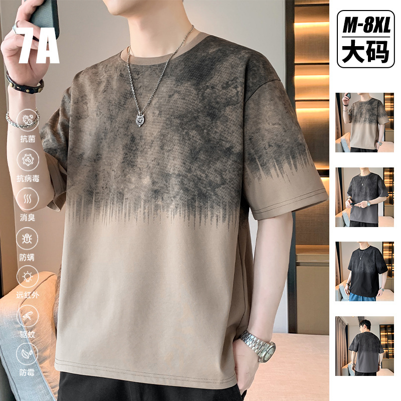 冰丝短袖男夏季2025新款美式渐变半袖t恤加肥加大码胖子体恤上衣