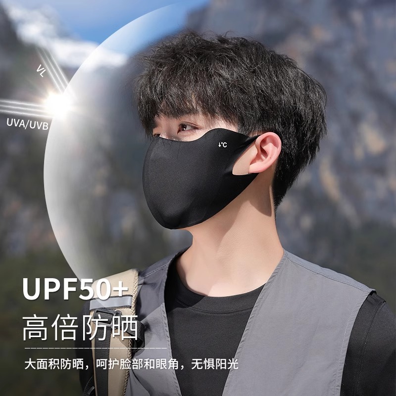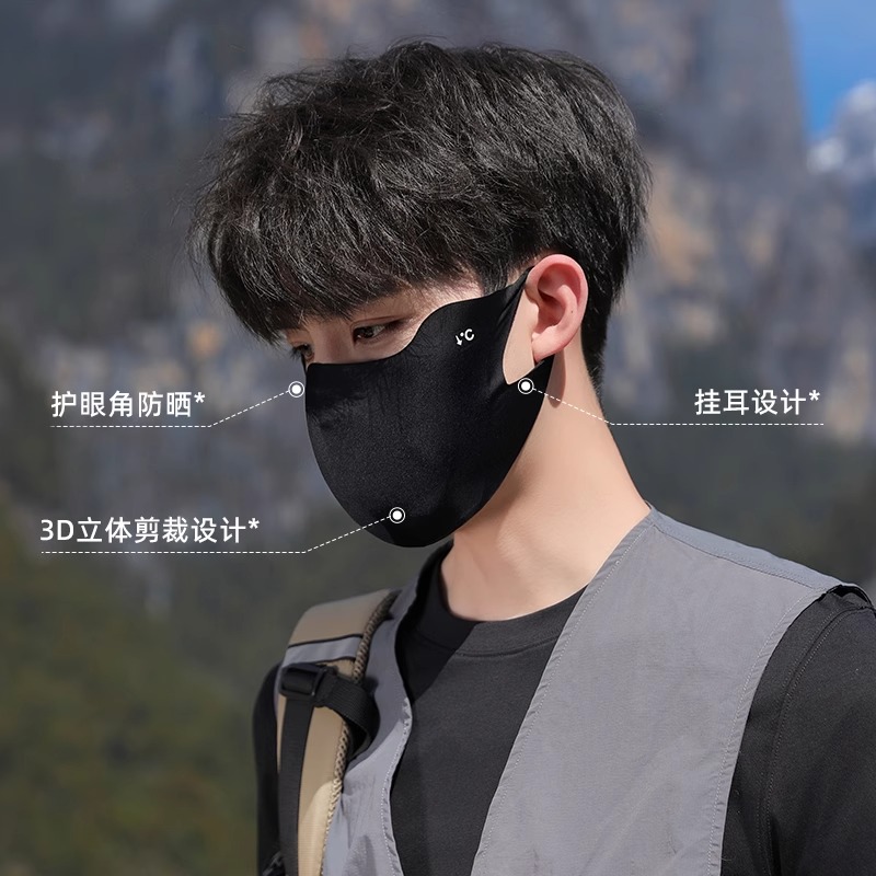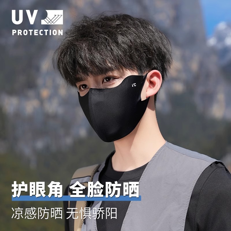 无痕防晒口罩男夏季防紫外线骑行电动车遮阳冰丝面罩3d立体护眼角