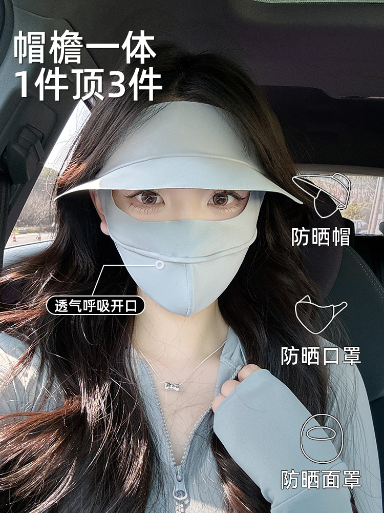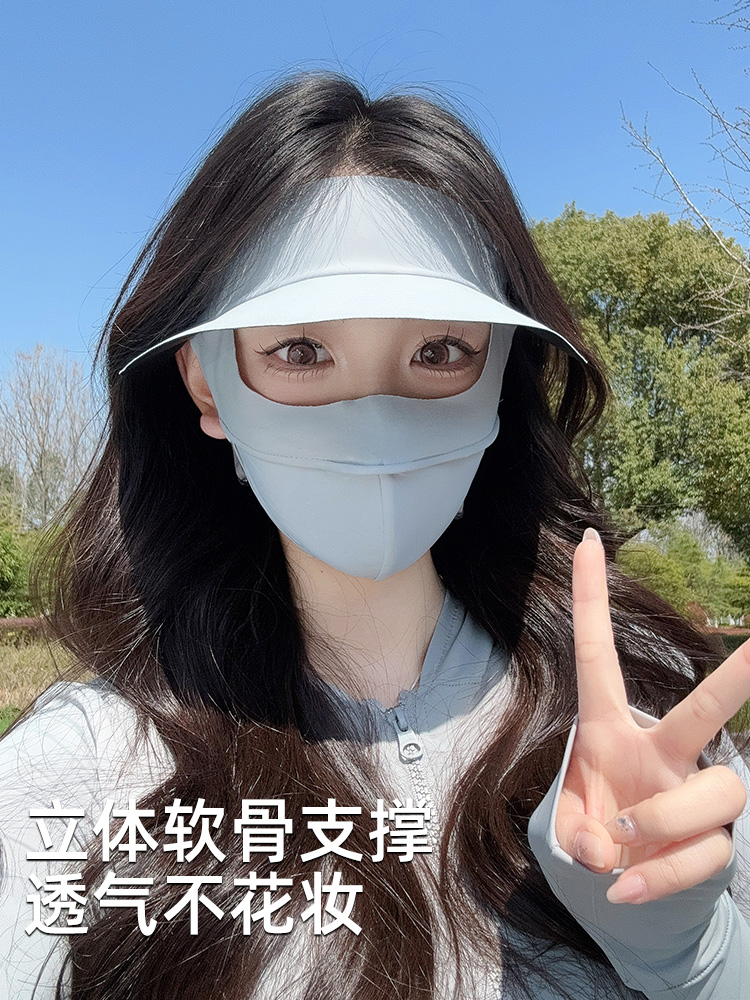 防晒面罩全脸防紫外线冰丝口罩户外薄款透气遮阳脸基尼骑车大帽檐