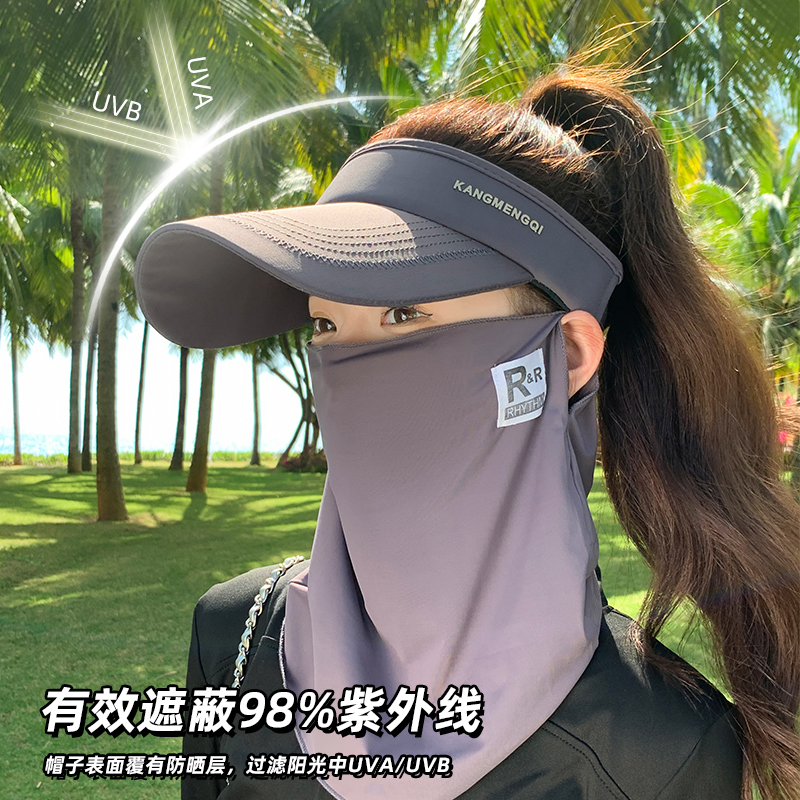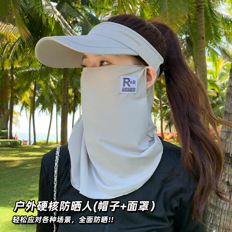 全脸防晒面罩女夏季2025新款防紫外线口罩帽子一体护颈遮阳空顶帽