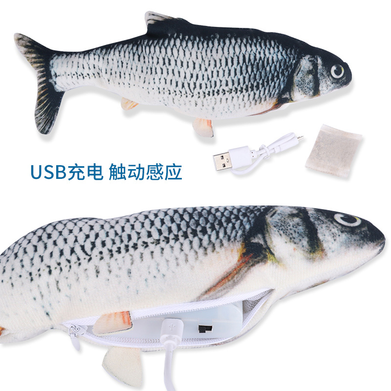 宠物用品爆款电动仿真鱼猫玩具 USB跳跳鱼带猫薄荷