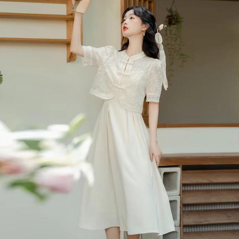 新中式国风盘扣上衣连衣裙两件套女夏季新款改良版旗袍套装裙