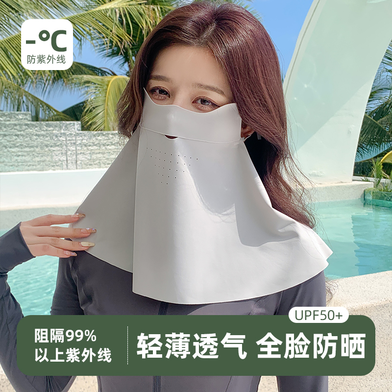 防晒面罩女夏季全脸防紫外线冰丝无痕一体护颈脸基尼骑行遮阳口罩