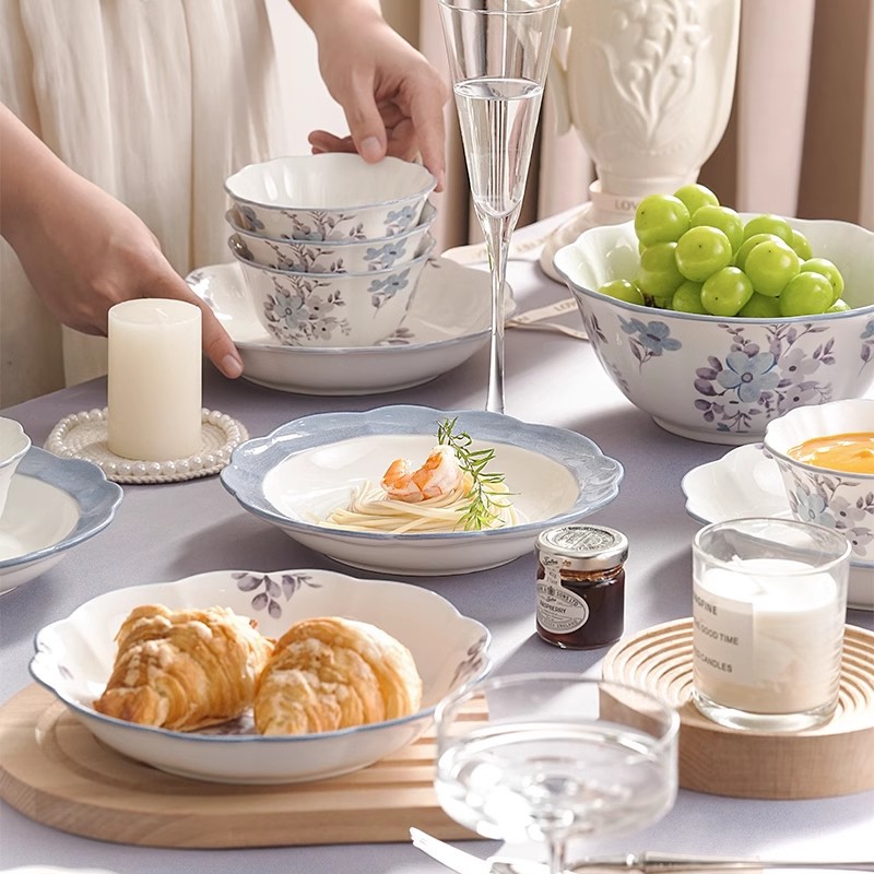 花开小清新陶瓷碗釉下彩餐具米饭碗家用新款简约盘子碗具套装