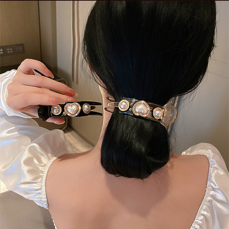 珍珠爱心发抓夹小众设计感气质鲨鱼夹小号韩国低马尾网红发饰女