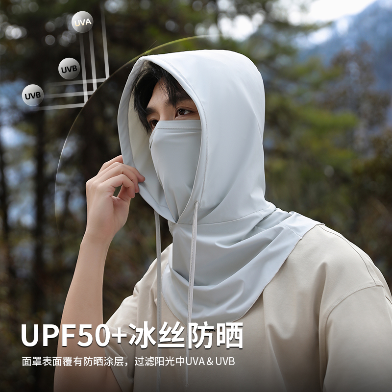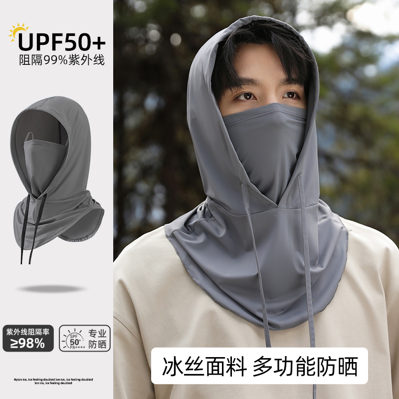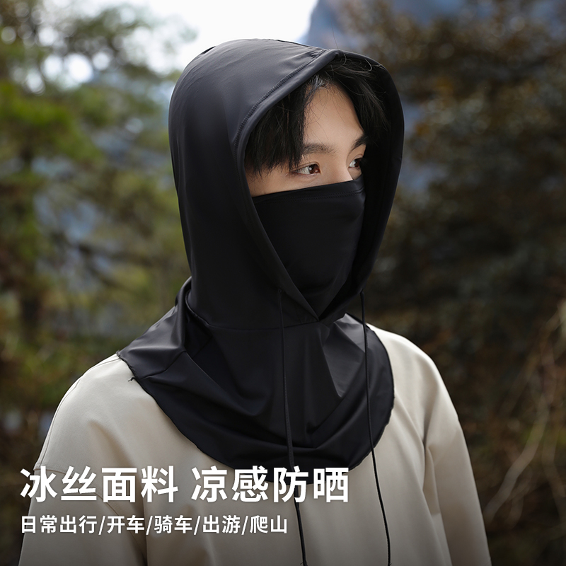 防晒面罩男遮全脸脖子一体护颈夏季骑行运动挂耳头巾口罩冰丝围脖