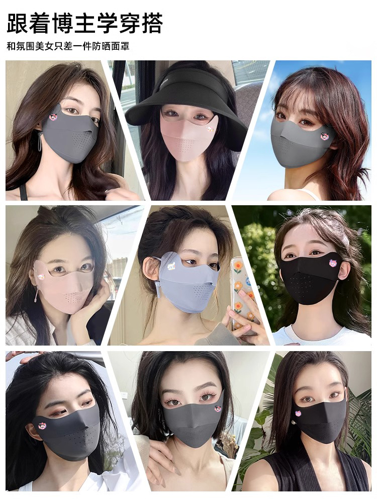冰丝防晒口罩防紫外线女夏季新款薄透气高颜值全脸无痕护眼角面罩