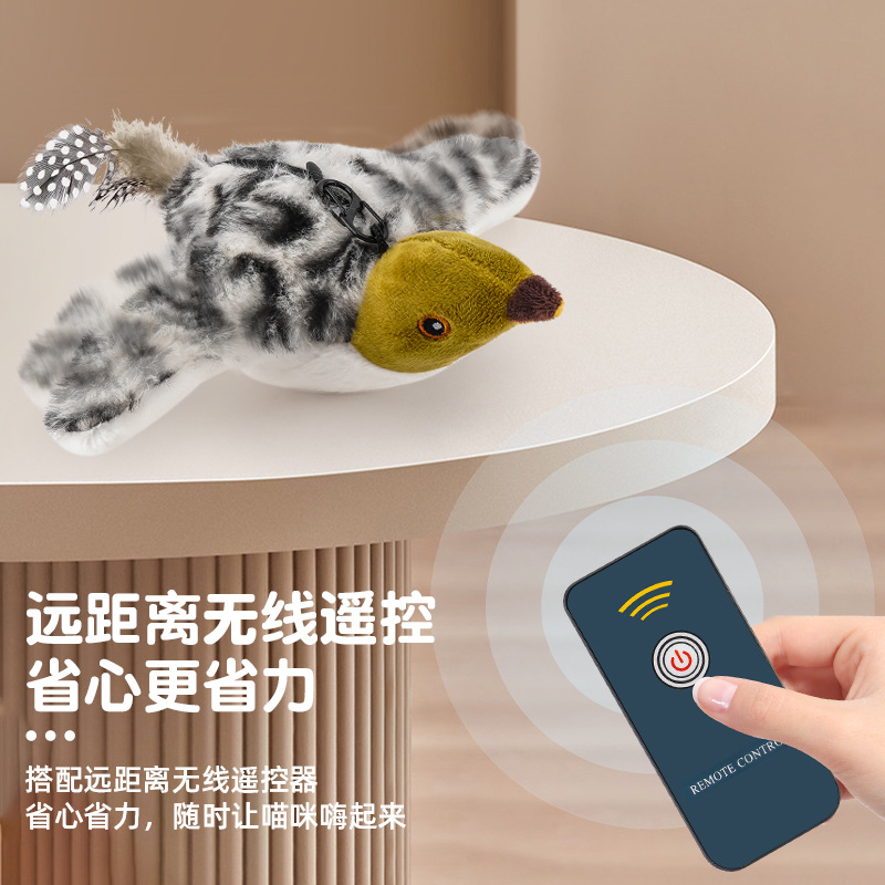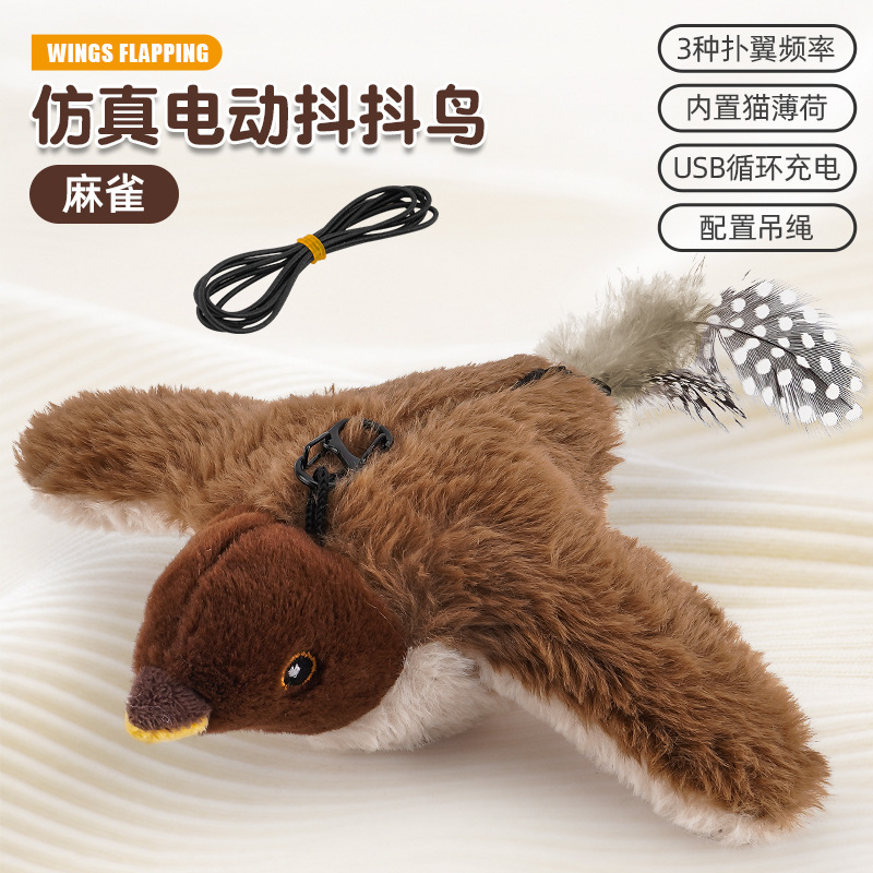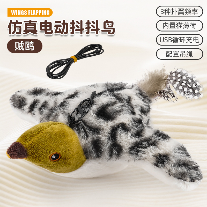 猫玩具亚马逊跨境电动仿真小鸟可充电猫咪自嗨发声抖抖鸟毛绒玩具