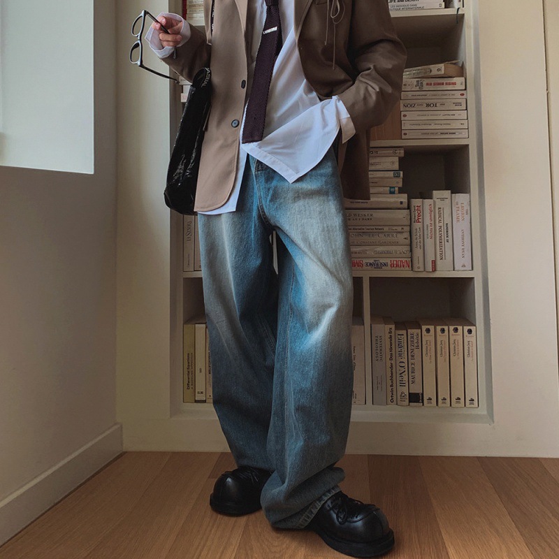 MYQ复古水洗牛仔裤男秋季宽松cleanfit阔腿长裤韩版潮流直筒裤