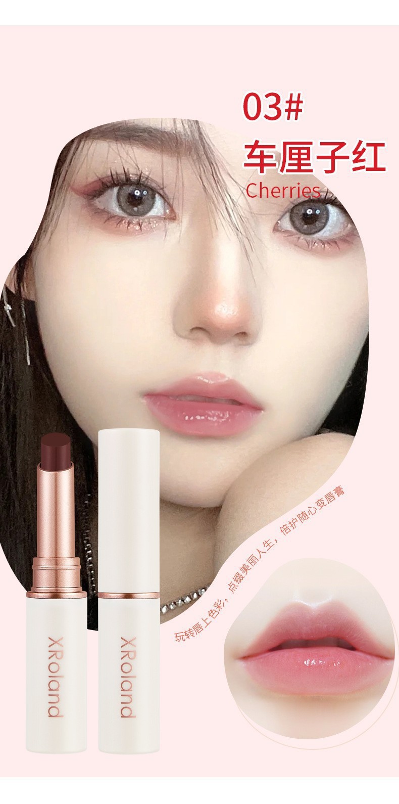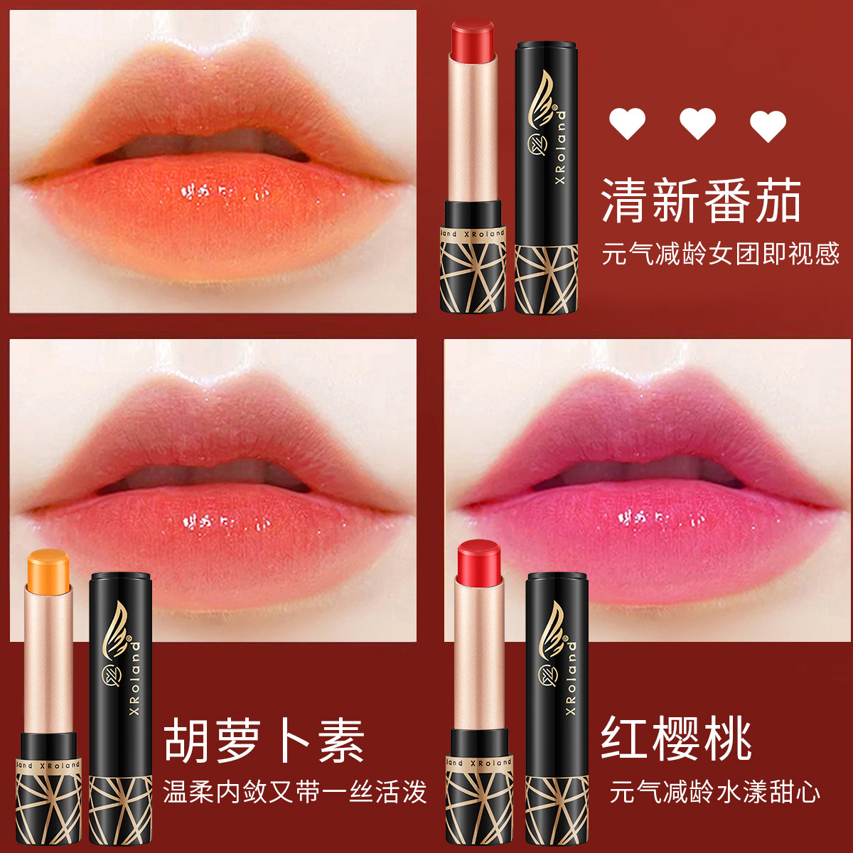 XRoland胡萝卜素红樱桃变色唇膏口红唇膏显白学生党平价厂家批发