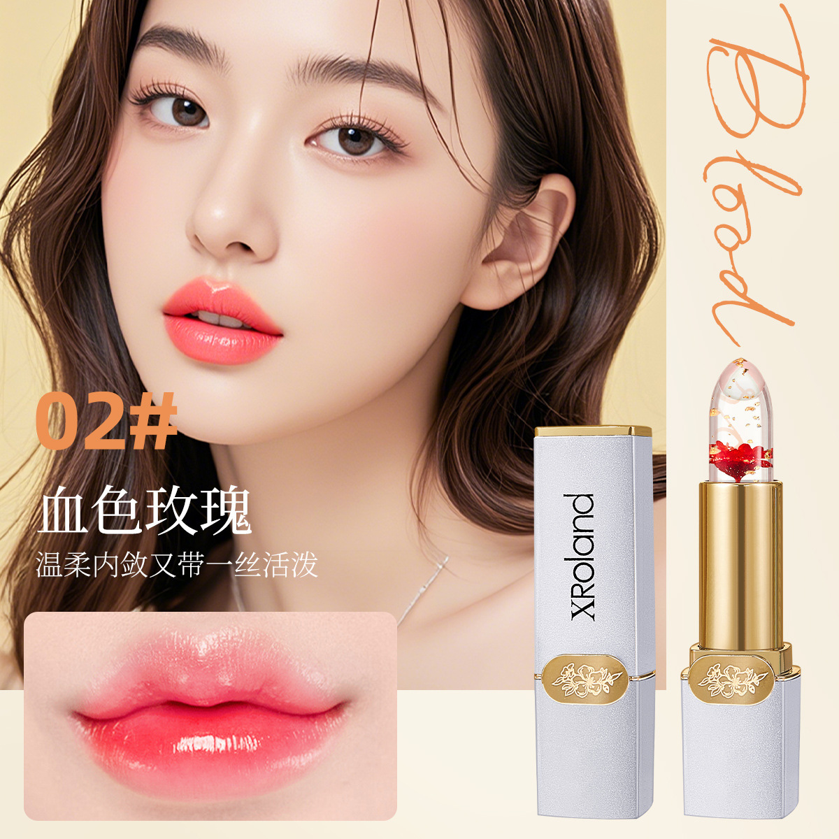 - 花瓣果冻支色口红02#血色玫瑰