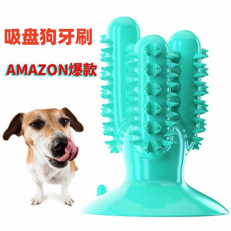 跨境宠物TPR漏食吸盘玩具 仙人掌宠物玩具 狗牙刷狗狗啃咬磨牙棒