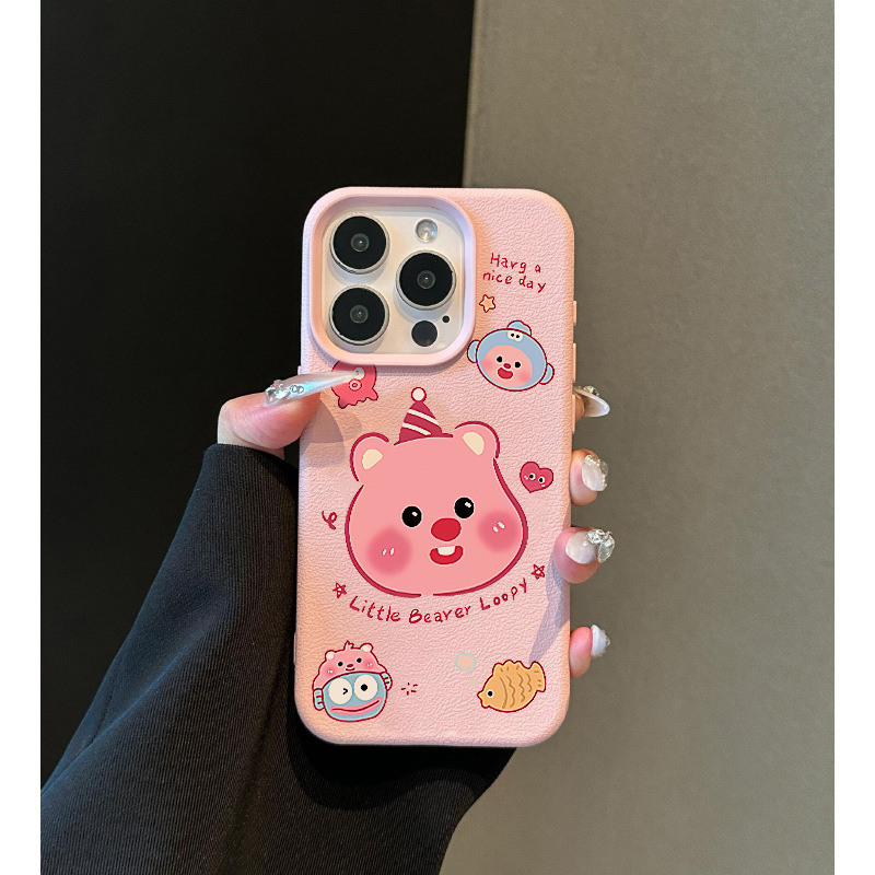 卡通露比海狸适用苹果15promax手机壳iPhone16pro荔枝纹14/13mini