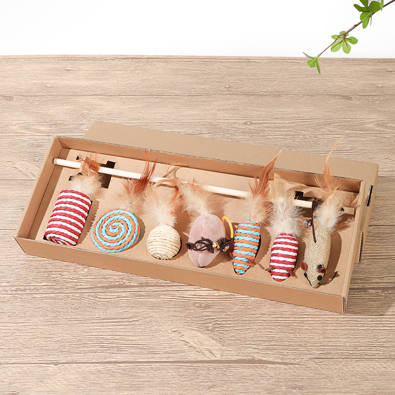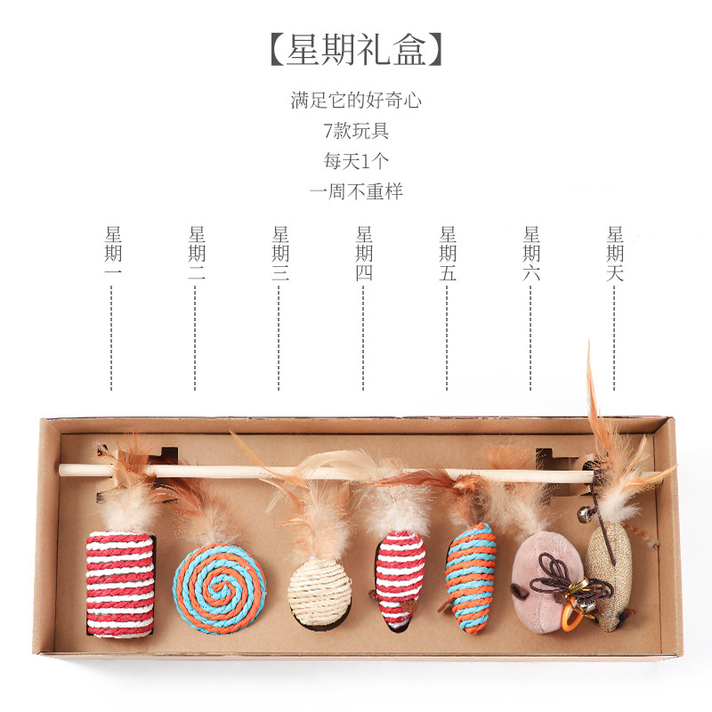 猫玩具逗猫棒七件套礼盒羽毛铃铛毛绒老鼠 猫咪磨牙互动娱乐