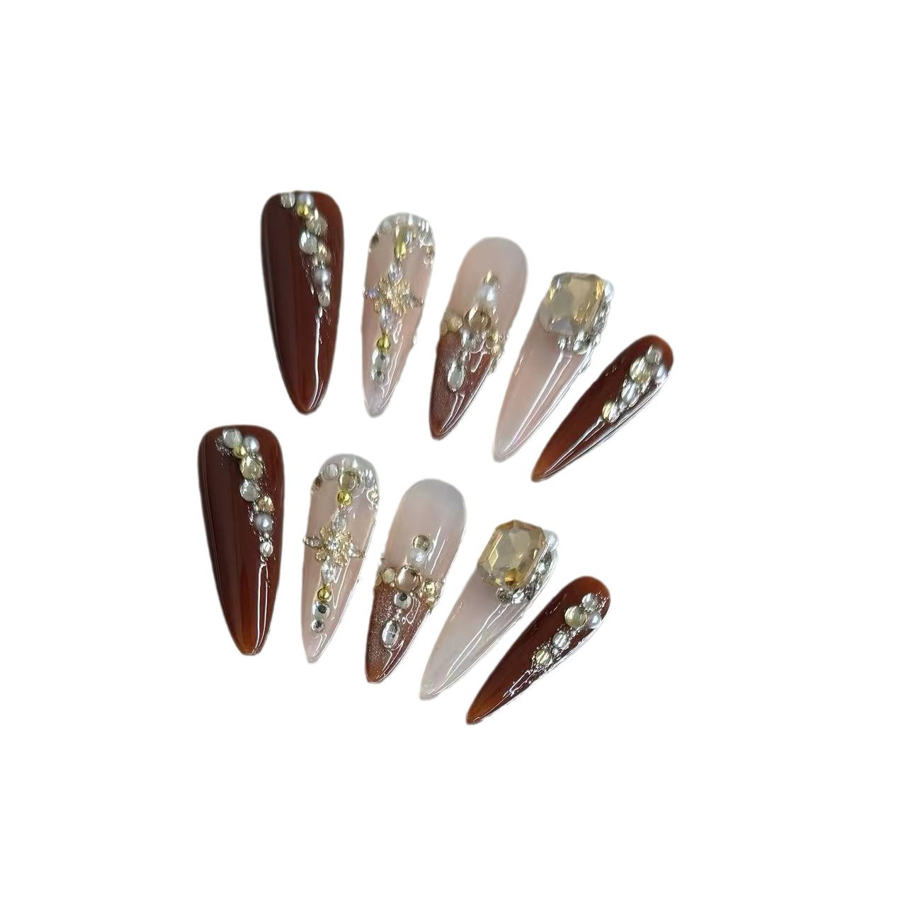 摩卡奶泡手工穿戴甲芭蕾款金属色假指甲贴片 可拆卸美甲贴片成品