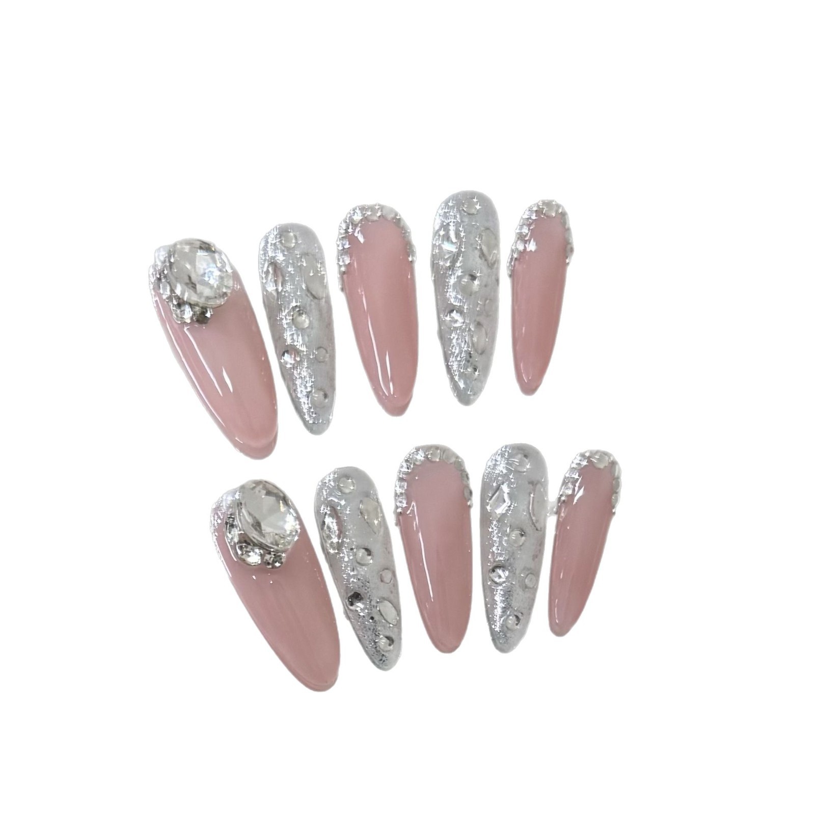 纯手工穿戴甲小清新甜美ins繁星点点长杏仁美甲显白温柔穿戴美甲