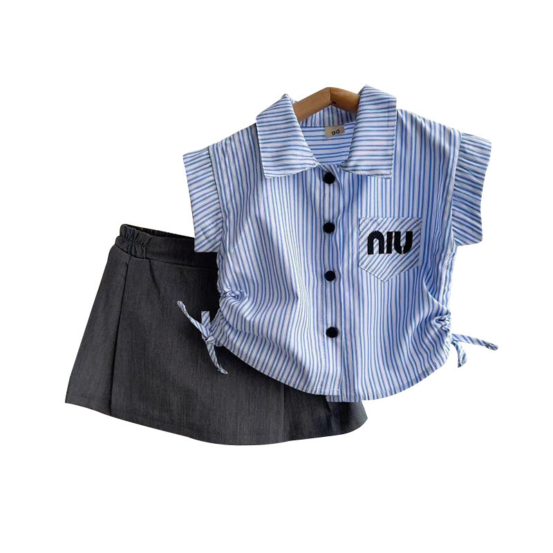 新品女童半身裙套装夏季新款美式学院风条纹衬衫短裙2025两件套