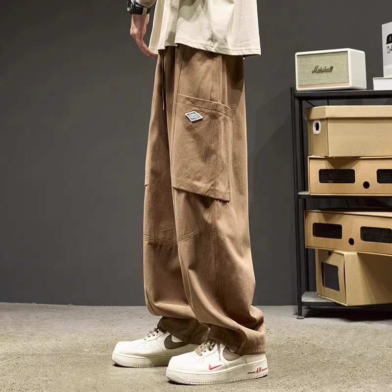 特大码胖子潮流大口袋纯棉工装裤男春秋季直筒宽松痞帅休闲阔腿裤