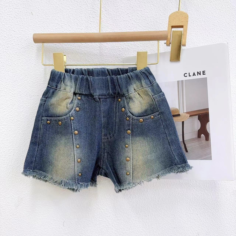 女童贴布牛仔针织棉背心夏季两件套新款女孩时髦无袖短款上衣套装
