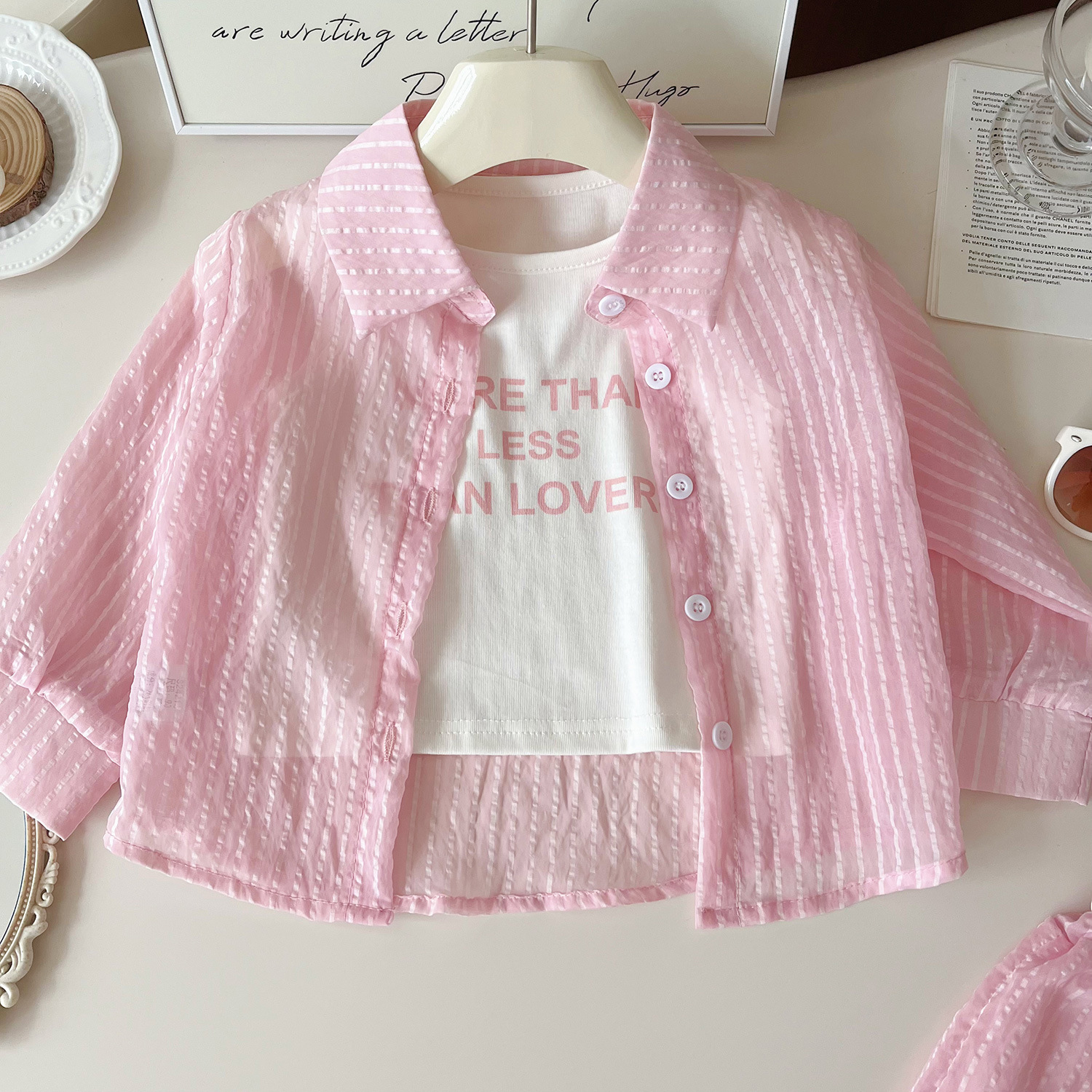 新品套装2025夏季新款韩版女童防虫 防晒衣长袖短裤童装三件套
