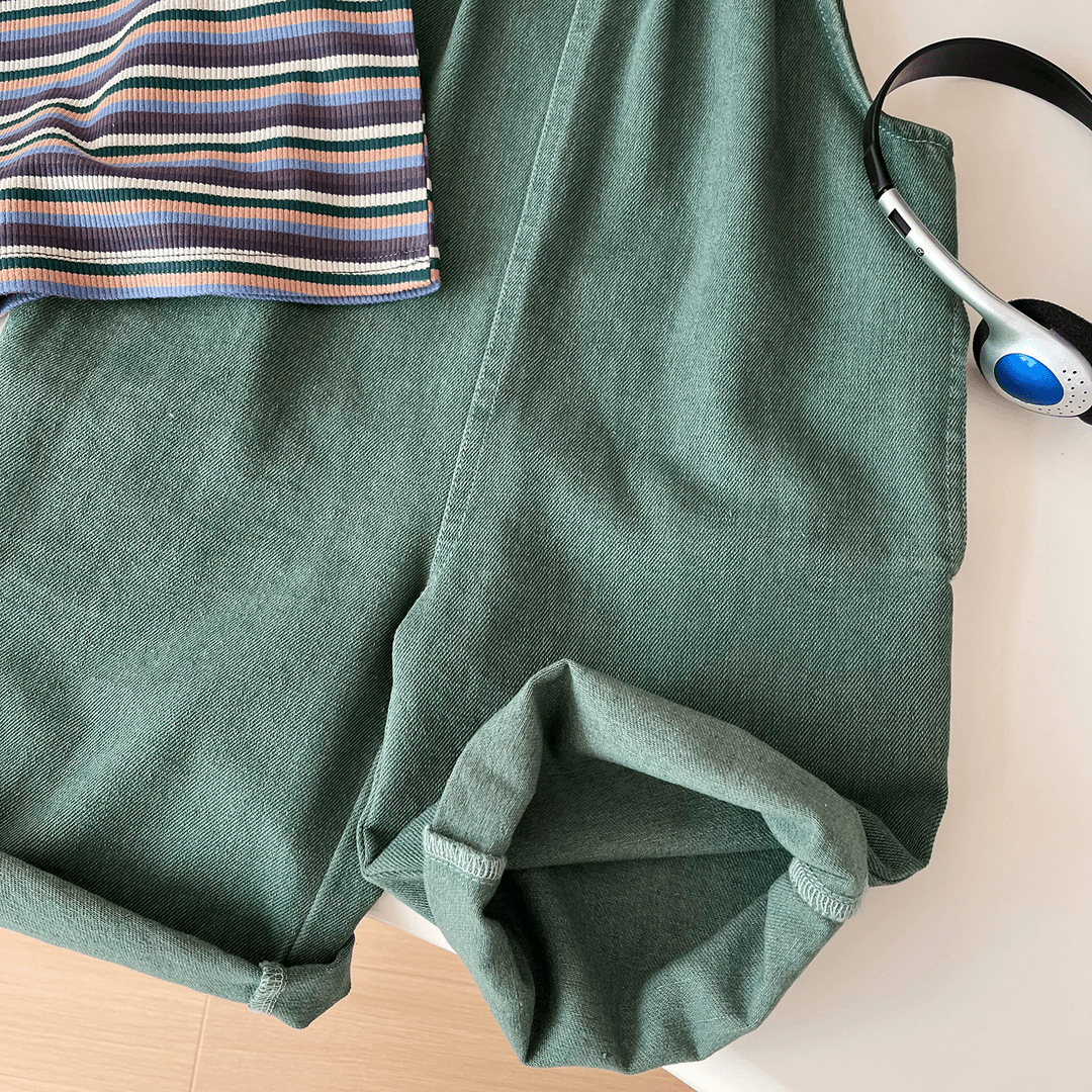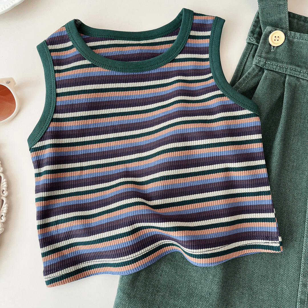 新品2025夏季新款韩版时尚条纹T恤背带牛仔裤中小童套装
