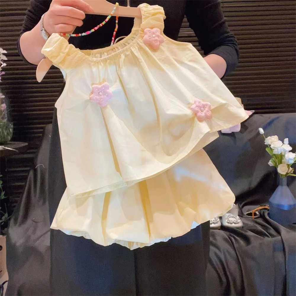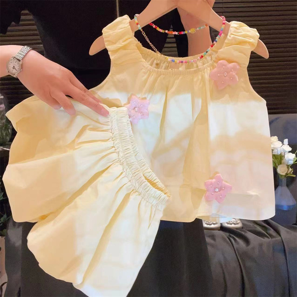 新品女童2025夏季洋气百搭可爱无袖连衣裙宝宝花苞裙中小童套装