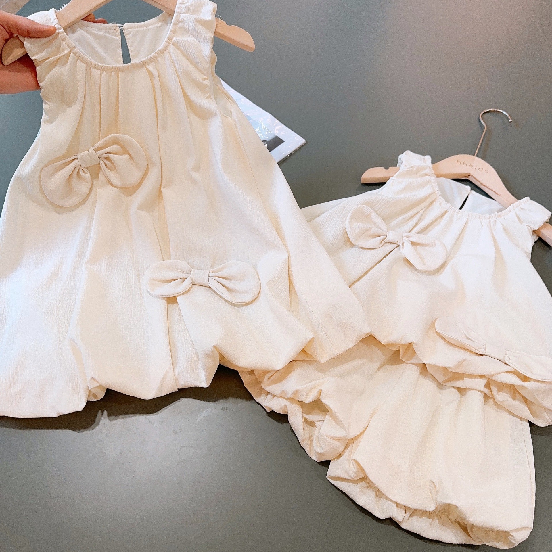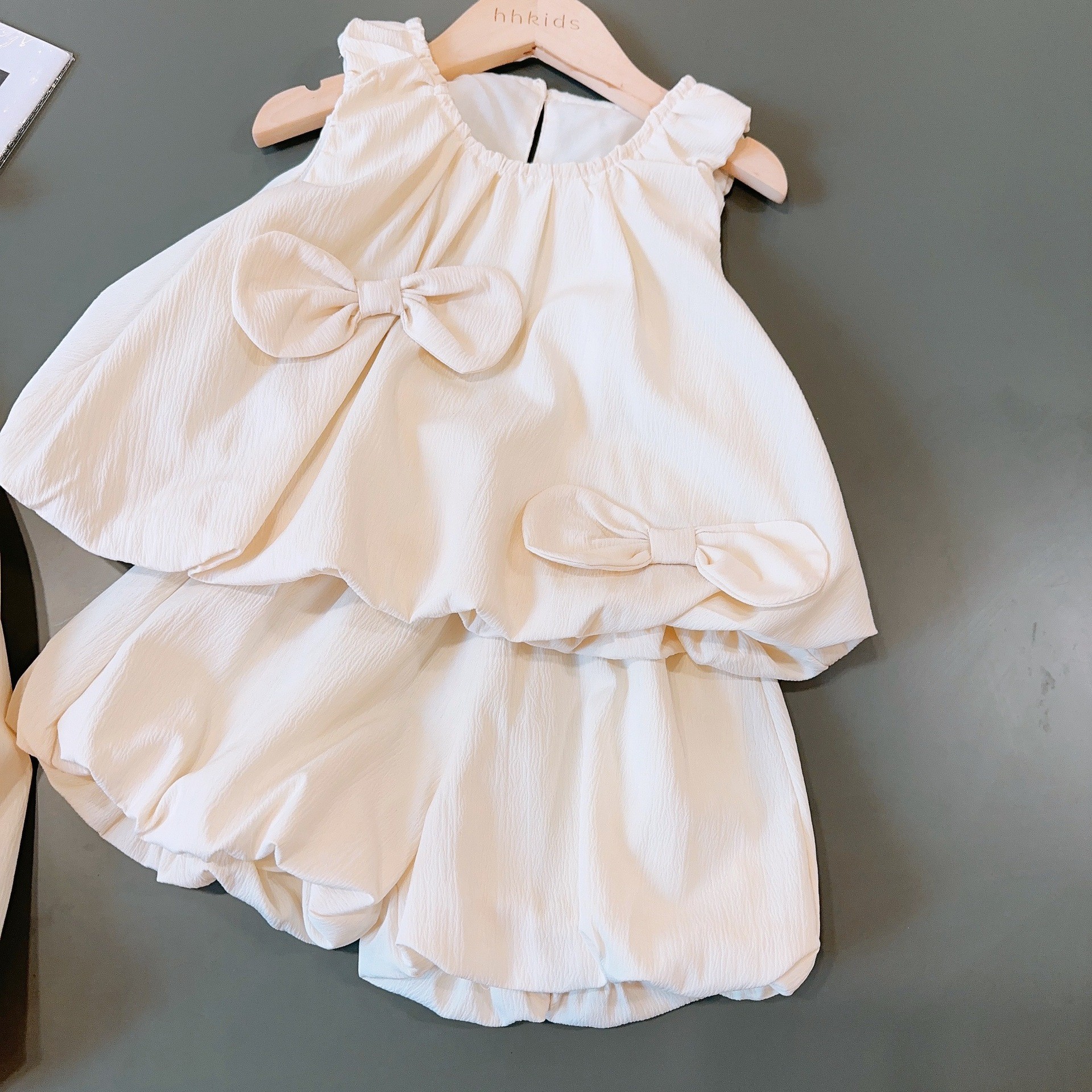 新品双版本儿童立体蝴蝶结2025无袖两件套裙花苞背心灯笼短裤套装