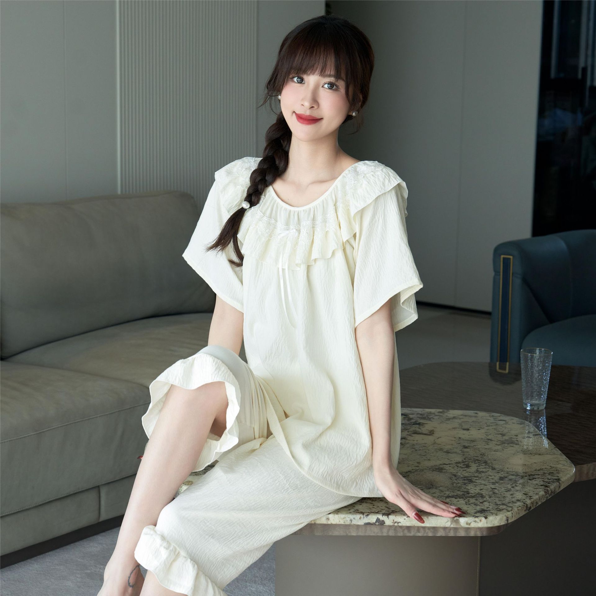 睡衣女夏季带胸垫蕾丝花边套装小红书推荐法式宫廷风家居服可外穿