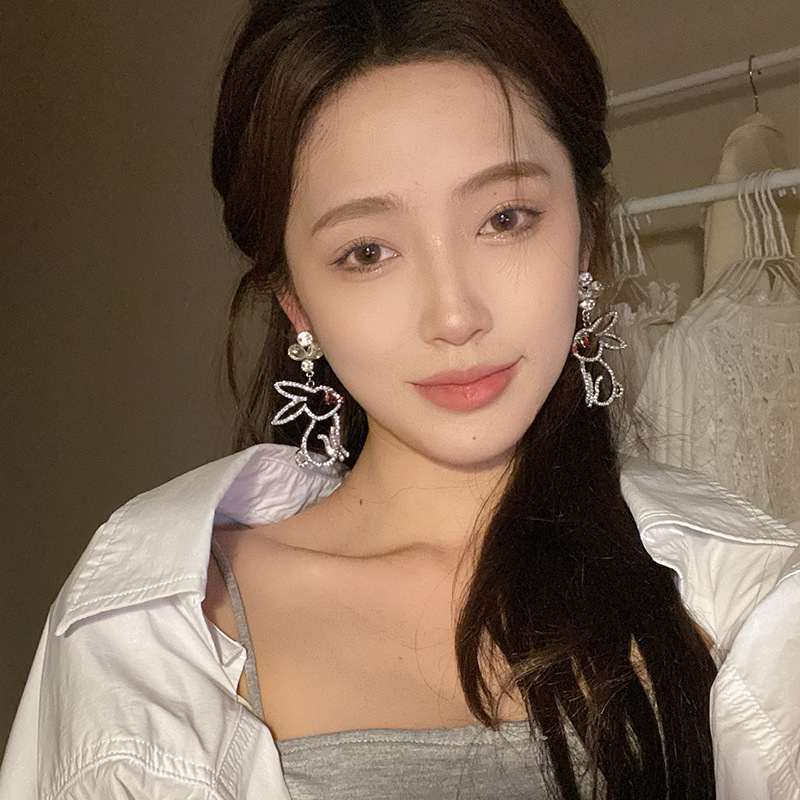 个性设计感立体镂空水钻萌兔子耳钉个性长款锆石耳环网红同款耳饰