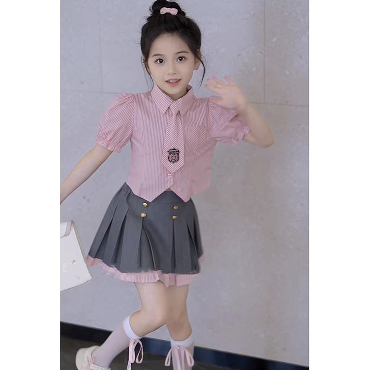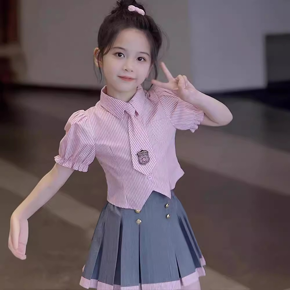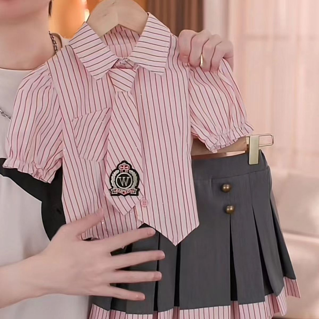 2025新款女童Jk套装学院洋气校服两件套衬衫上衣裙子儿童夏季洋气