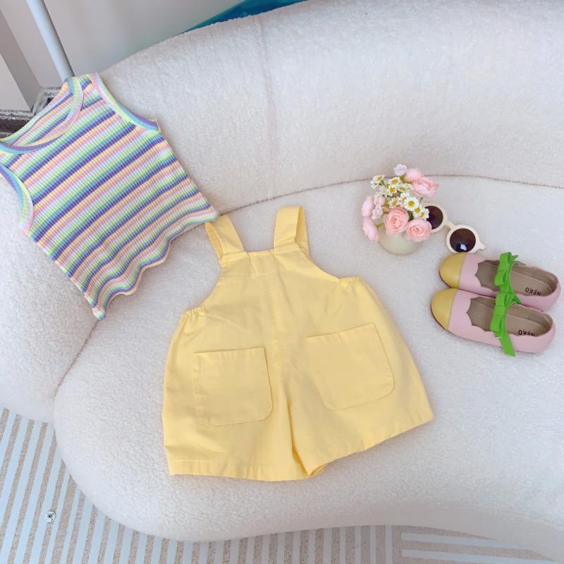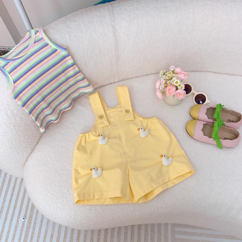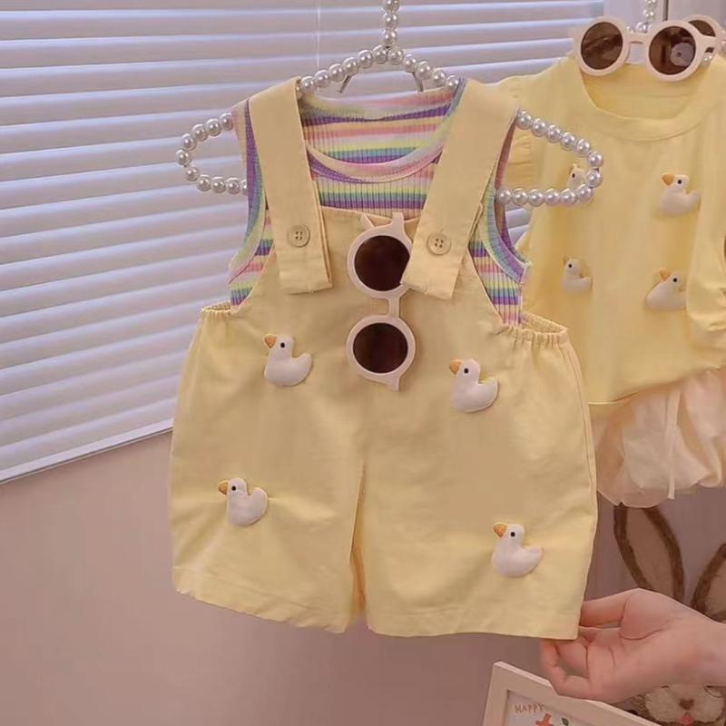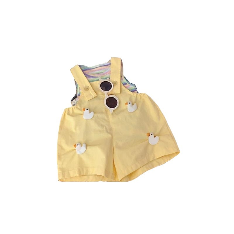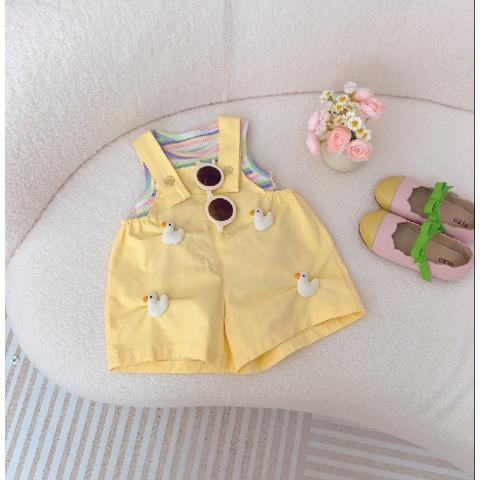 宝宝夏季套装2025新款可爱小鸭背带裤两件套小童短袖夏季女童衣服