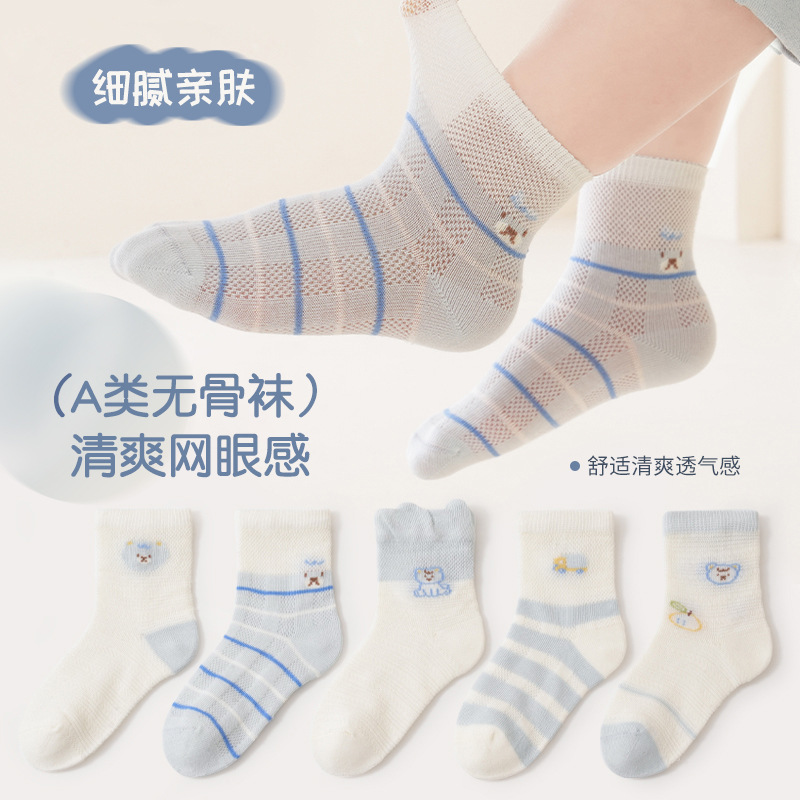 A类儿童袜子夏季宝宝夏天网眼袜夏款婴儿袜子卡通中筒薄袜棉袜男