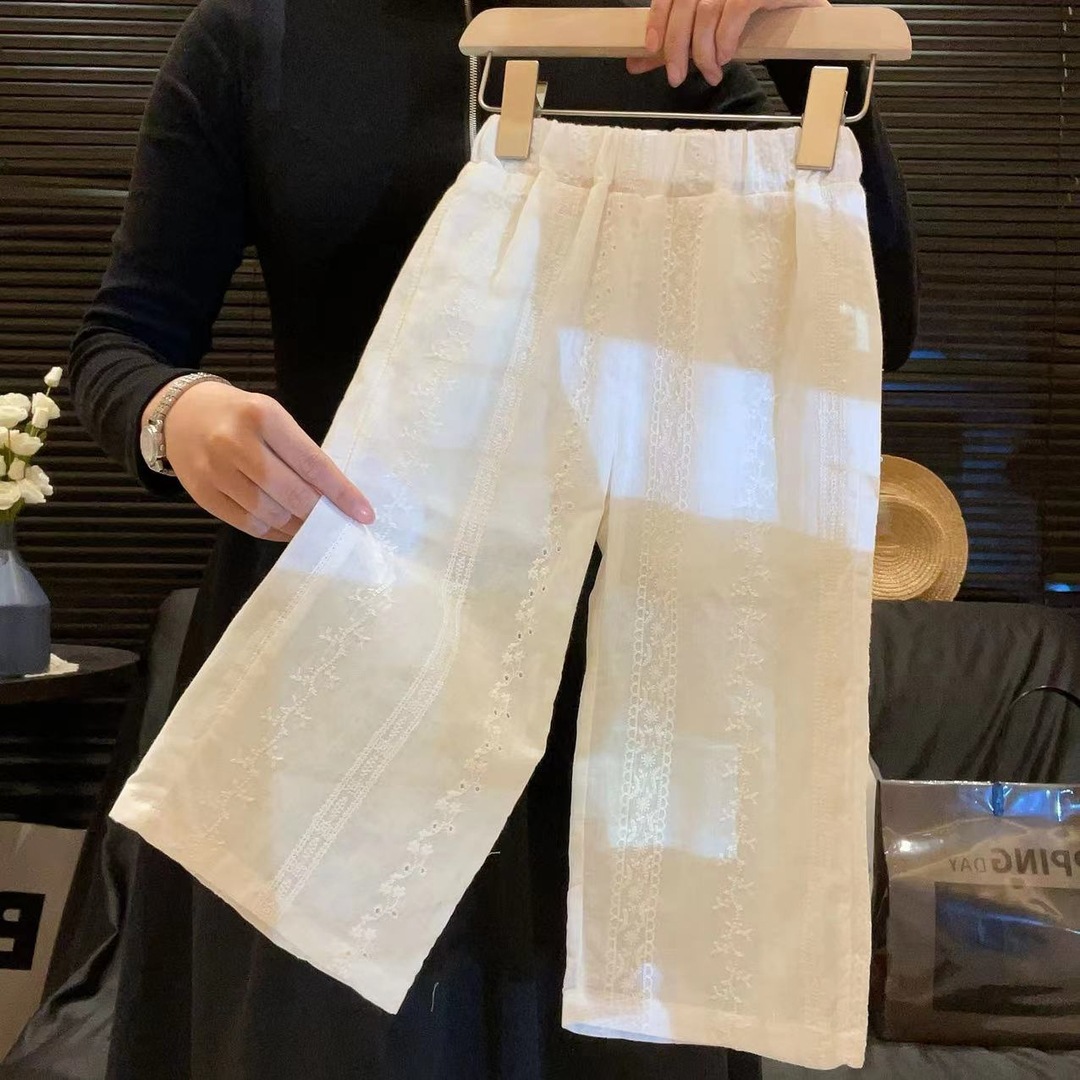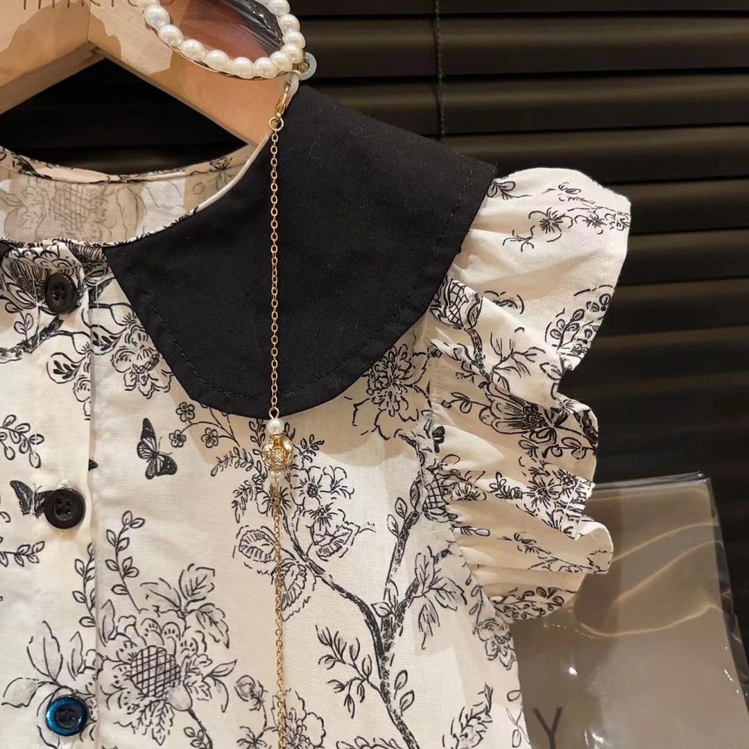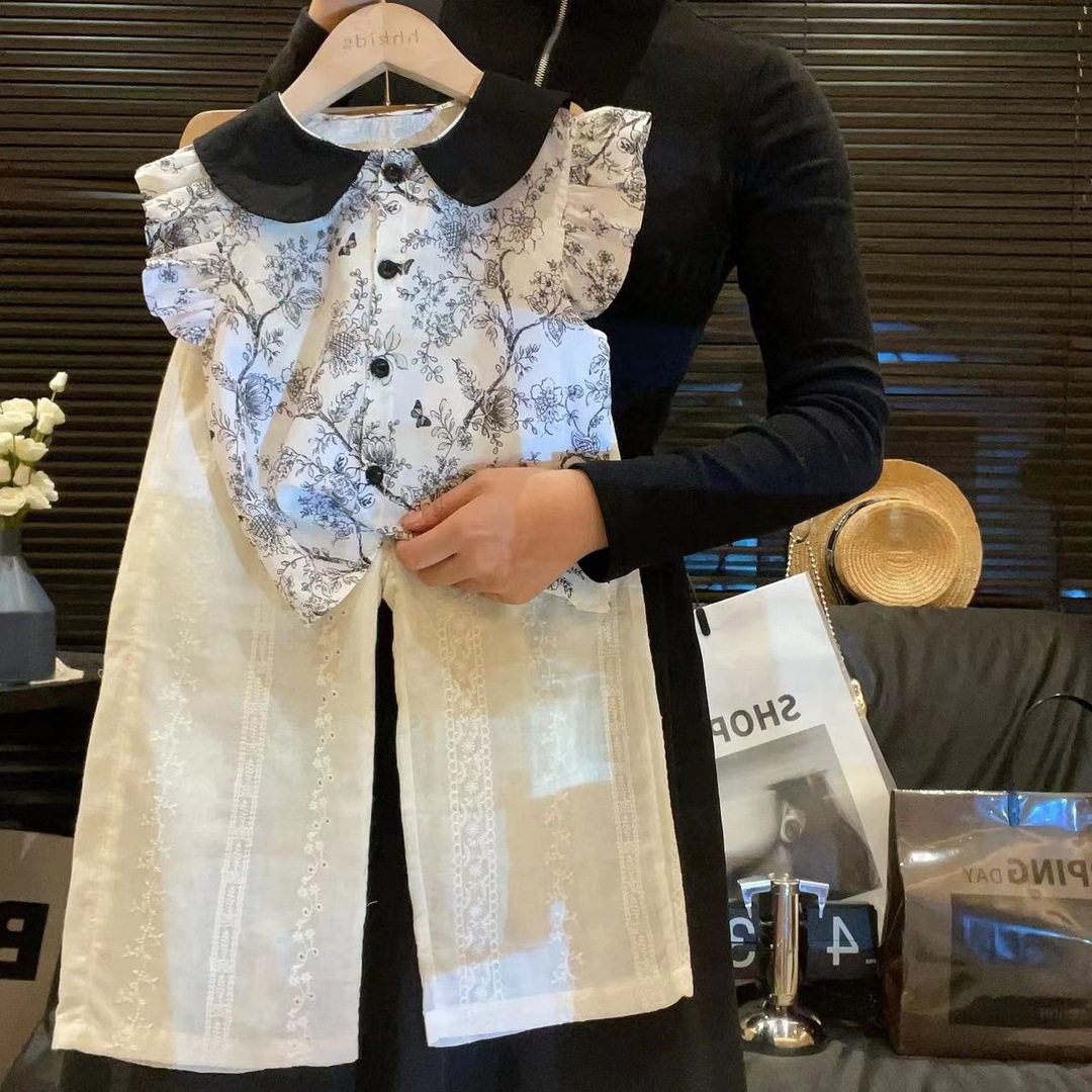 女童夏季韩版2025衬衫阔腿裤套装儿童油墨碎花新品上衣衬衣两件套
