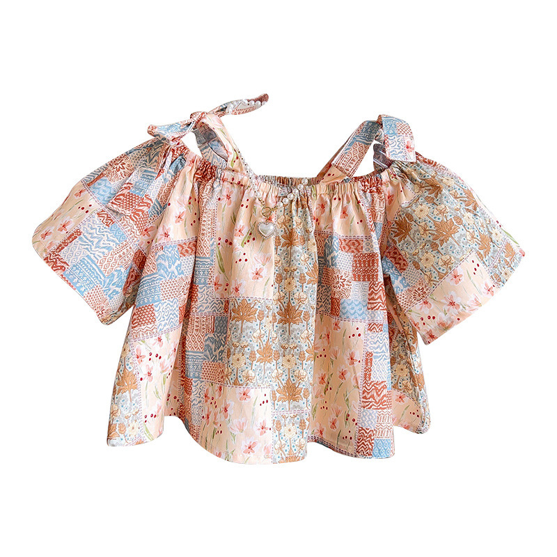 新品两件套复古风法式碎花衬衫女夏季2025新款格子短袖短裤套装