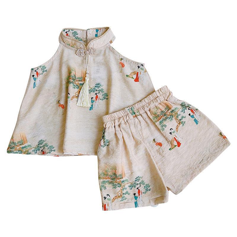 女童套装2025夏季新款中式上衣中国风古风吊带短裤两件套